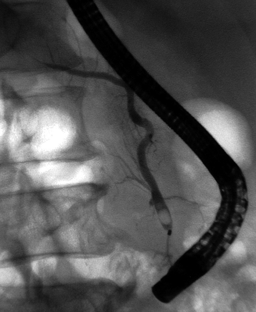本性例のERCP画像では主膵管とその分枝にあきらかな狭窄所見や壁の不整を認めない。