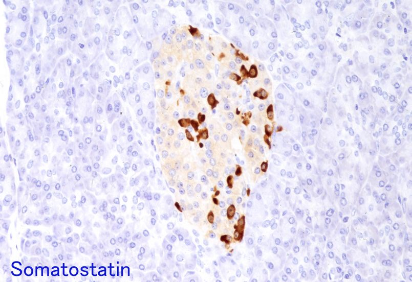 islet cellは各々分泌するホルモン以外の免疫染色ではchromograninA, synaptophysin, CD56, CD99, NSEおよびPDX-1陽性となる。