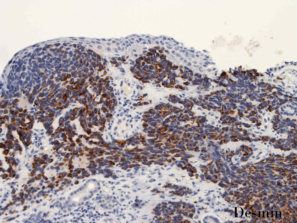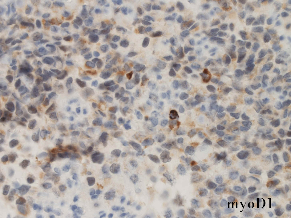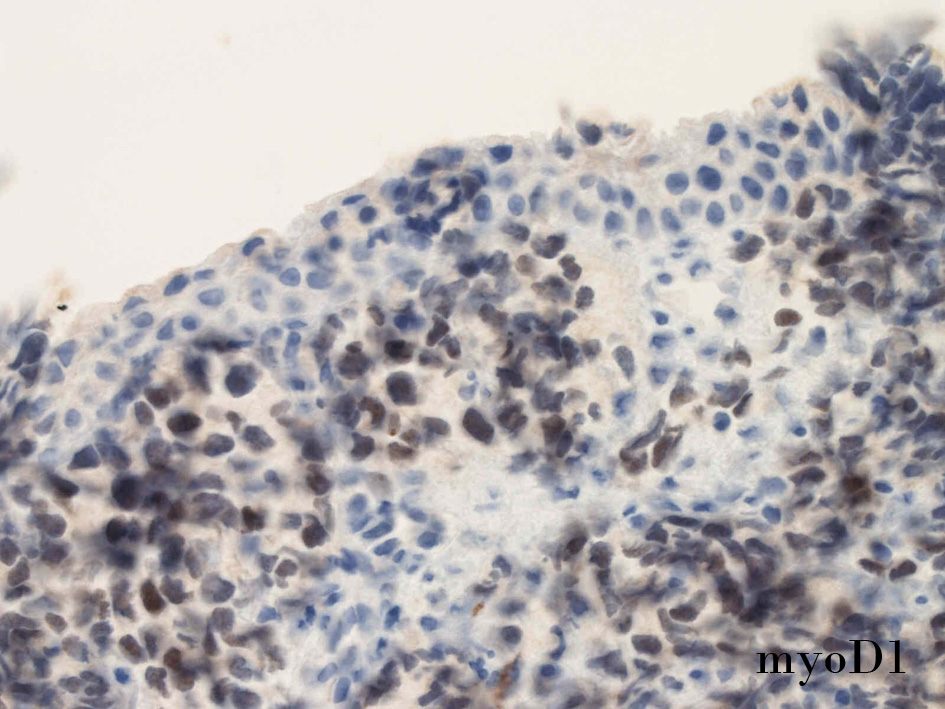 small round cell tumorの中でrhabdomyosarcomaは腫瘍細胞に種々の抗原が陽性となるため診断を誤ることがあり注意が必要である*1