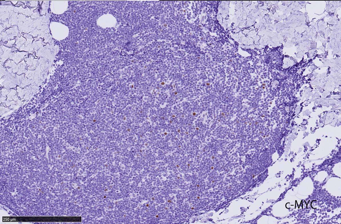 TCL1の発現は、胚中心(GC)中心芽細胞、中心細胞、GC後のメモリーB細胞、濾胞性リンパ腫(FL)、バーキットリンパ腫(BL)、びまん性大B細胞リンパ腫(DLBCL)などの胚中心から生じる腫瘍、慢性リンパ性白血病(CLL)などのメモリー細胞に認められる*20*24.胸腺細胞の発生後期におけるTCL1の長期間の発現増加は、T細胞前リンパ球性白血病(T-PLL)を引き起こす*19*20.