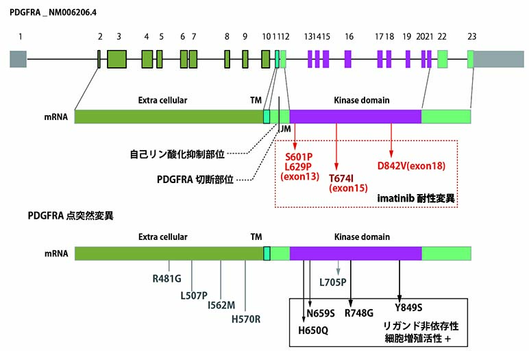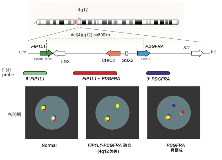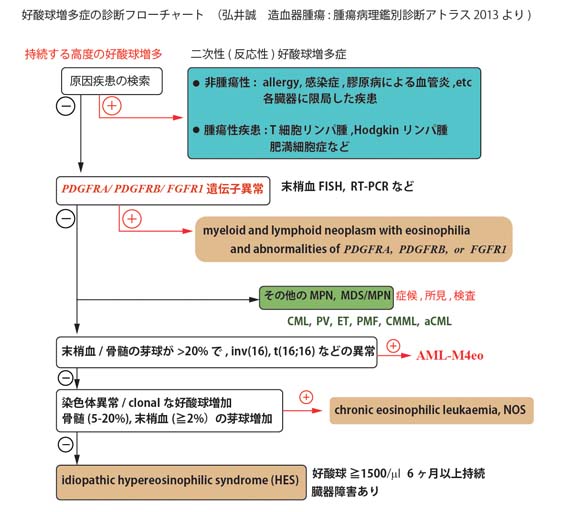 *1 弘井 誠 好酸球増加およびPDGFRA, PDGFRBまたはFGFR遺伝子異常を伴う骨髄系ならびにリンパ系腫瘍と慢性好酸球性白血病 定平 吉都,北川 昌伸 編, 造血器腫瘍 腫瘍病理鑑別診断アトラス 2013; pp79-84 文光堂 東京 *2 Chusid MJ, et al, The hypereosinophilic syndrome: analysis of fourteen cases with review of the literature.Medicine (Baltimore). 1975 Jan;54(1):1-27. *3 Cools J, et al, A tyrosine kinase created by fusion of the PDGFRA and FIP1L1 genes as a therapeutic target of imatinib in idiopathic hypereosinophilic syndrome. N Engl J Med. 2003 Mar 27;348(13):1201-14. *4 Metzgeroth G, et al. Recurrent finding of the FIP1L1-PDGFRA fusion gene in eosinophilia-associated acute myeloid leukemia and lymphoblastic T-cell lymphoma. Leukemia. 2007 Jun;21(6):1183-8. *5 Patterer V, et al. Hematologic malignancies with PCM1-JAK2 gene fusion share characteristics with myeloid and lymphoid neoplasms with eosinophilia and abnormalities of PDGFRA, PDGFRB, and FGFR1. Ann Hematol. 2013; 92(6): 759-769. *6 Bain BJ, Ahmad S. Should myeloid and lymphoid neoplasms with PCM1-JAK2 and other rearrangements of JAK2 be recognized as specific entities? Br J Haematol. 2014; 166(6): 809-817. *7 Rumi E, Milosevic JD, Selleslag D, et al. Efficacyof ruxolitinib in myeloid neoplasms with PCM1-JAK2 fusion gene. Ann Hematol. 2015;94(11):1927-1928. *8 Elling C, et al. Novel imatinib-sensitive PDGFRA-activating point mutaions in hypereosinophilic syndrome induce growth factor independence and leukemia-like disease Blood 2011; 117; 2935-2943 *9 定明子ほか 好酸球増多症候群(HES)の新分類と腫瘍性HESの分子標的治療 臓器病変を伴う好酸球増多症 診断と治療 2015; 103(5): 655-660 *10 Pardanani A, et al. FIP1L1-PDGFRA fusion: prevalence and clinicopathologic correlates in 89 consecutive patients with moderate to severe eosinophilia. Blood. 2004 Nov 15;104(10):3038-45. *11 Stover EH, et al. Activation of FIP1L1-PDGFRalpha requires disruption of the juxtamembrane domain of PDGFRalpha and is FIP1L1-independent.Proc Natl Acad Sci U S A. 2006 May 23;103(21):8078-83. *12 Cools J, et al. A tyrosine kinase created by fusion of the PDGFRA and FIP1L1 genes as a therapeutic target of imatinib in idiopathic hypereosinophilic syndrome.N Engl J Med. 2003 Mar 27;348(13):1201-14. *13 Klion AD. How I treat hypereosinophilic syndromes. Blood. 2009 Oct 29;114(18):3736-41. *14 Gotlib J, Cools J. Five years since the discovery of FIP1L1-PDGFRA: what we have learned about the fusion and other molecularly defined eosinophilias. Leukemia. 2008 Nov;22(11):1999-2010. *15 Gleich GJ, Leiferman KM. The hypereosinophilic syndromes: current concepts and treatments. Br J Haematol. 2009 May;145(3):271-85. *16 Tefferi A, et al. Hypereosinophilic syndrome and clonal eosinophilia: point-of-care diagnostic algorithm and treatment update. Mayo Clin Proc. 2010 Feb;85(2):158-64. *17 Stover EH, et al. The small molecule tyrosine kinase inhibitor AMN107 inhibits TEL-PDGFRbeta and FIP1L1-PDGFRalpha in vitro and in vivo.Blood. 2005 Nov 1;106(9):3206-13. Epub 2005 Jul 19. *18 Lierman E, et al. FIP1L1-PDGFRalpha D842V, a novel panresistant mutant, emerging after treatment of FIP1L1-PDGFRalpha T674I eosinophilic leukemia with single agent sorafenib.Leukemia. 2009 May;23(5):845-51. *19 Cools J, et al. PKC412 overcomes resistance to imatinib in a murine model of FIP1L1-PDGFRα-induced myeloproliferative disease. Cancer Cell. 2003 May;3(5):459-69. *20 Baumgartner C, et al. Dasatinib inhibits the growth and survival of neoplastic human eosinophils (EOL-1) through targeting of FIP1L1-PDGFRalpha.Exp Hematol. 2008 Oct;36(10):1244-53. *21 Klion AD. How I treat hypereosinophilic syndromes. Blood. 2009 Oct 29;114(18):3736-41.