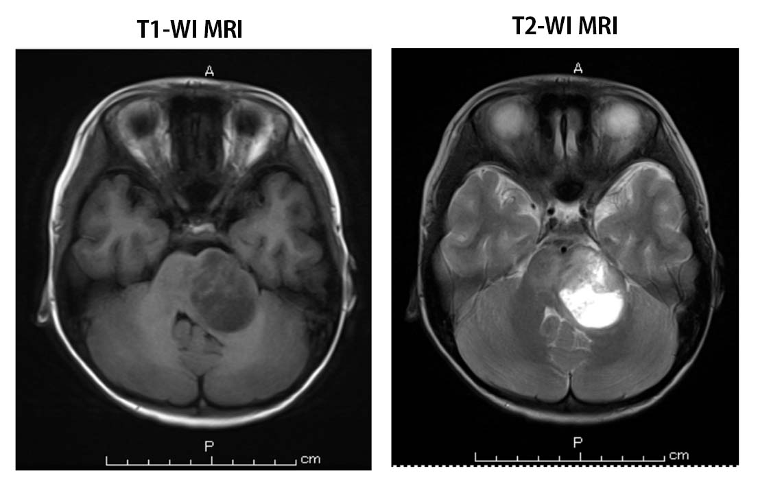 Integrated diagnosis: Diffuse midline glioma(brainstem glioma) H3K27M-mutant, WHO gradeIV