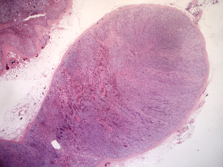 腎臓;糸球体係蹄内に腫瘍細胞が増殖するほか細腎動脈にもみとめられる。