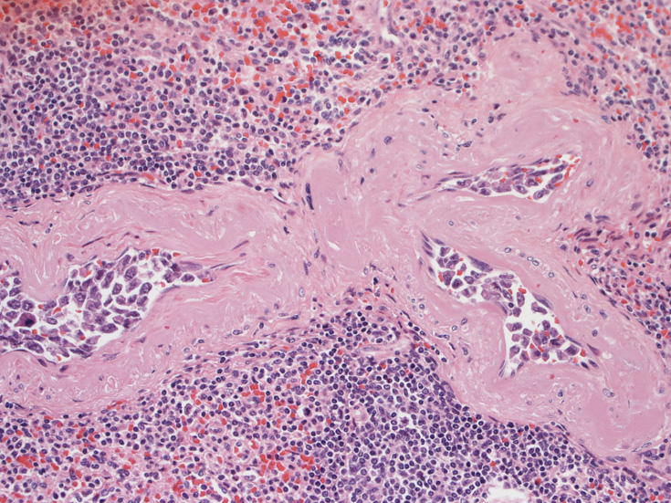 生検組織により血管内腔を塞ぐように大型異型リンパ球が増殖していることを確認することが診断の要件である。血管内増殖の病変分布が本病型では, 脳, 肺, 肝, 腎, 副腎, 皮膚, 骨髄など特有である。しかし大細胞型B細胞リンパ腫にはこのような臓器を選択的に侵襲するが, 血管内腔には増殖しないものがあることに留意が必要である。