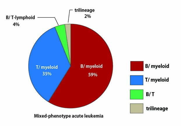 ほとんどの症例がB/myeloid形質である。まれにT/ myeloid形質を示す。 非常にまれに3系統の形質を発現した症例の報告がある。