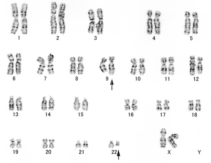 t(9;22)以外の付加的染色体異常が加わりしばしば複雑核型を示す。