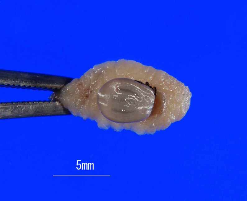 マダニと思われる虫体を皮膚ごと切除した。