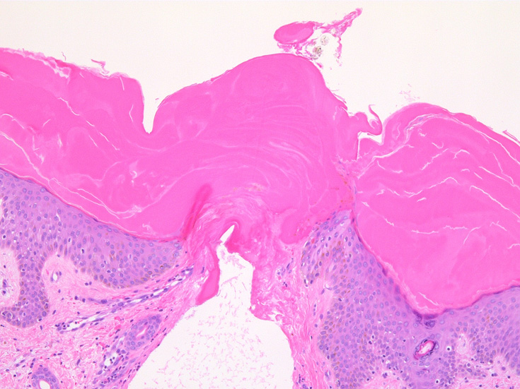 (case02の皮膚表面にみられる硝子様の層がそれに相当するようです。)