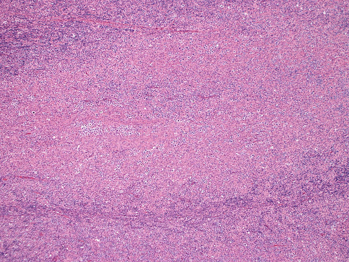 - Hodgkin's cell, Reed-Sternberg細胞様大型細胞がしばしば認められる。
