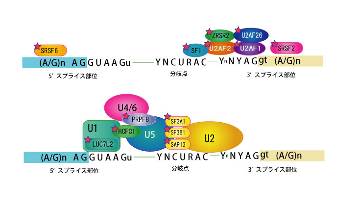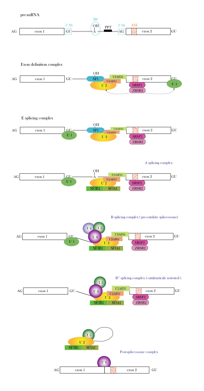 U2AF(U2 auxiliary factor)35/65,SRSF2, ZRSR2, SF3B1, SF3A1