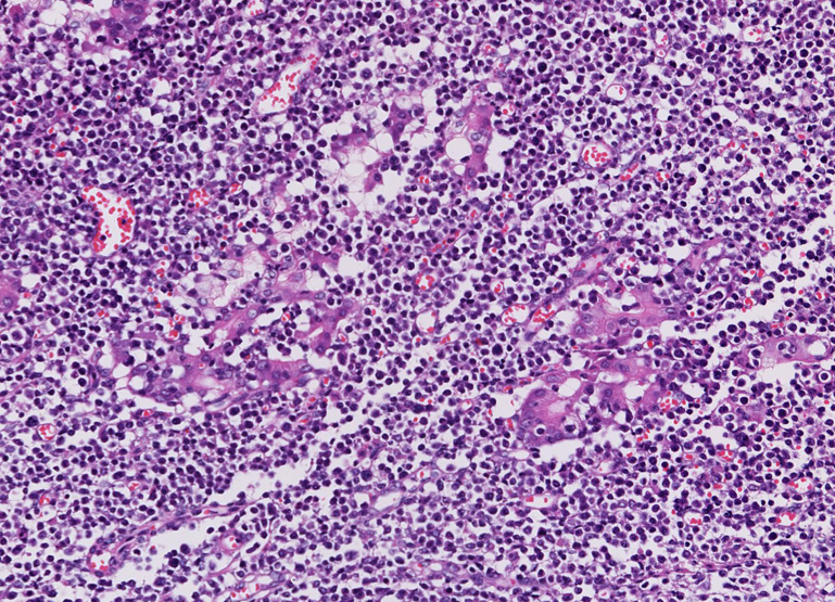 - Lymphoepithelial lesion(LEL)が高度なこと(ただしLELは他のリンパ腫にも出現しMALT lymphomaに特異的な所見ではありません。)