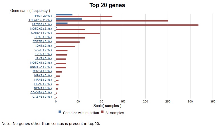 Cosmic(catlogue of somatic mutations in cancer)に記載されているMALT lymphomaでmutationの認められたgenes.