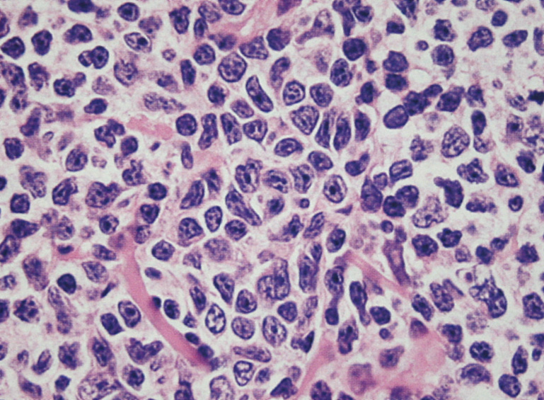- 豊かな蒼白(pale)の細胞質をもつ小型から中型細胞で核と細胞質が表面上末梢単球に類似している。