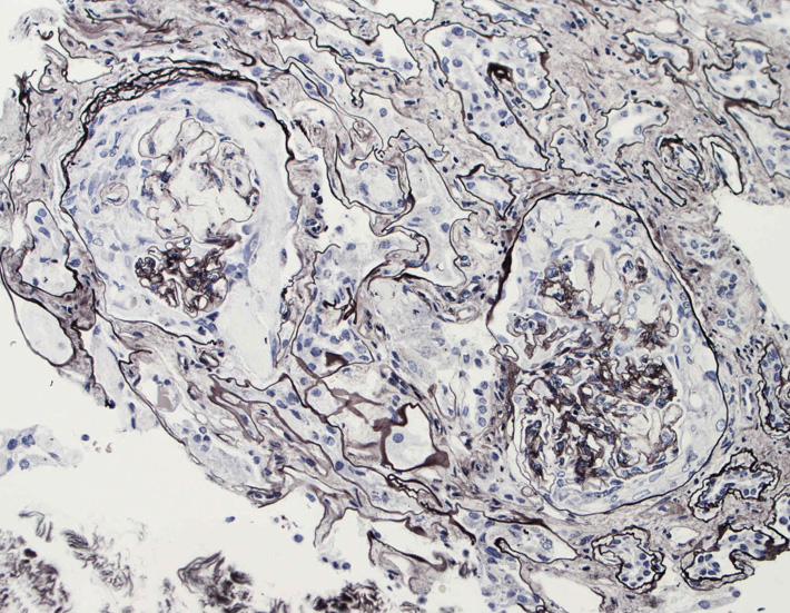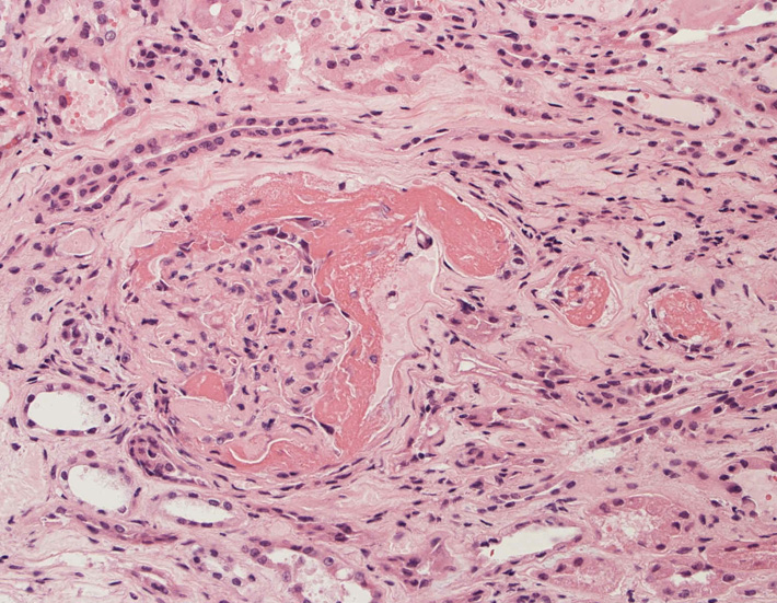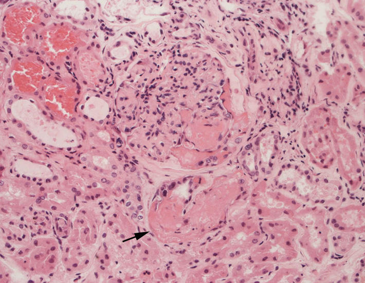 腎臓の病理組織所見-->壊死性糸球体腎炎