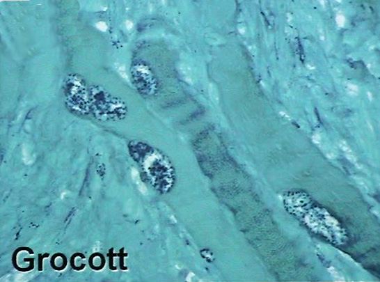 右頸部腫瘤の生検組織所見では, 横紋筋内にmicroorganismらしき構造物が認められた。