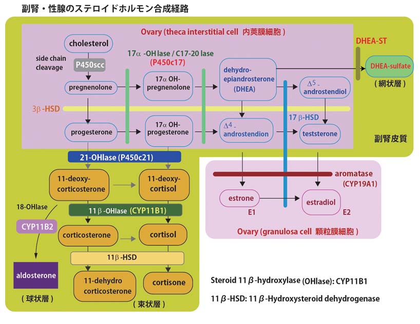 コレステロールは、すべてのステロイドホルモンの合成基質になる. ステロイド産生には、細胞の取り込み, 輸送, コレステロール利用が適切に調節されることが必要であり, その後に一連の特異な生合成ステップが続く.