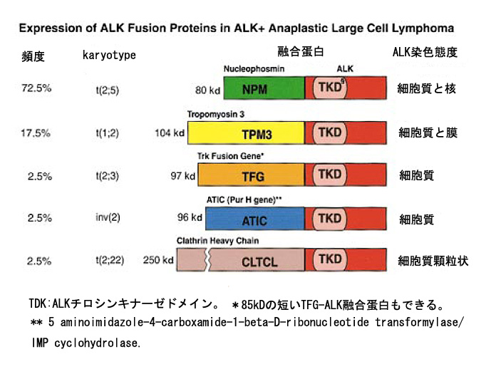ALCLにおいてはALKのpartner geneは2003年までに9種類みつかっている。