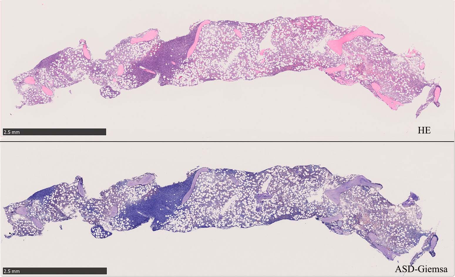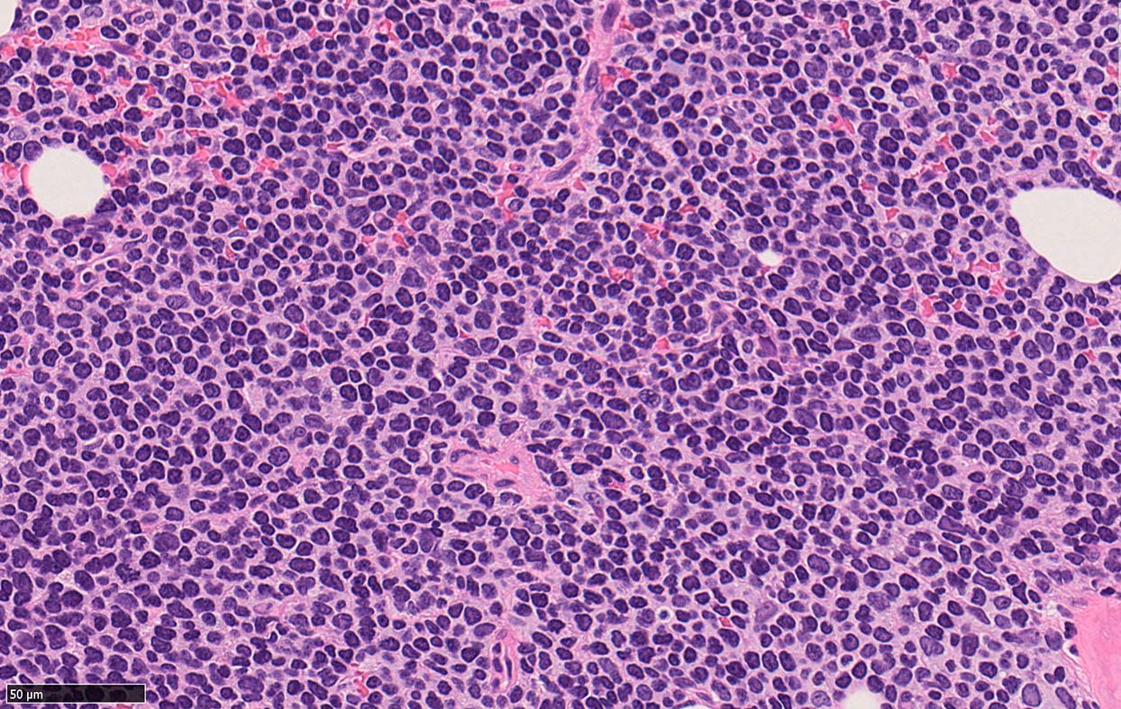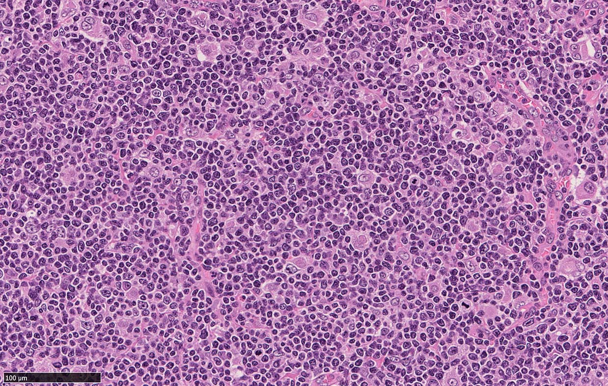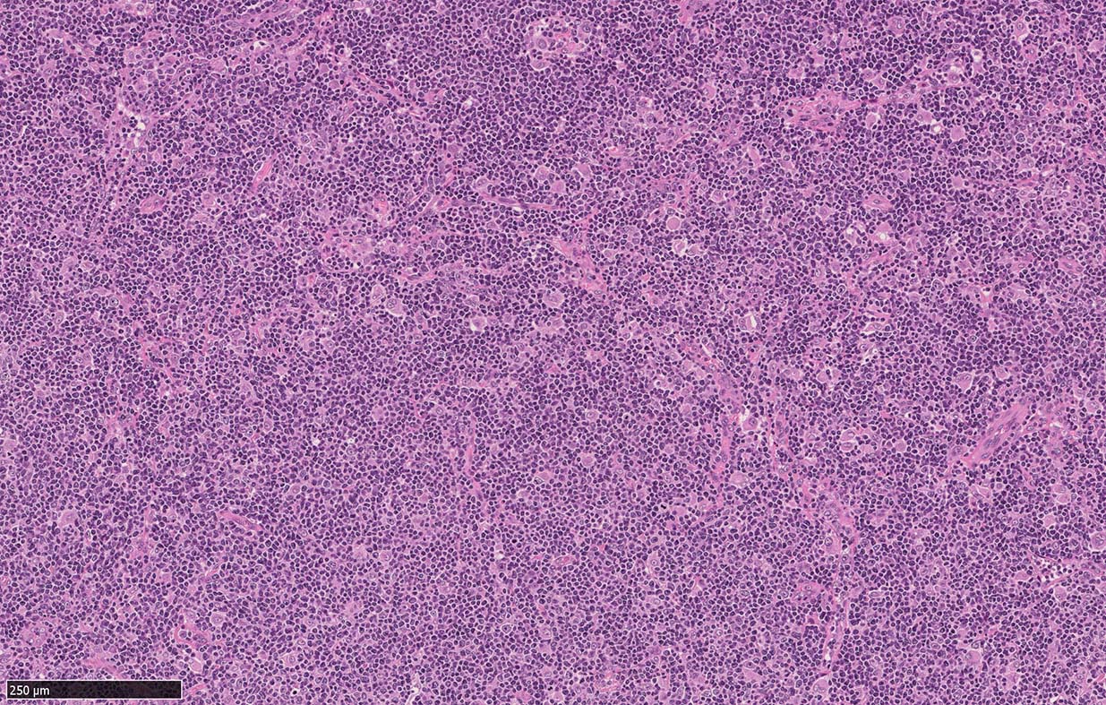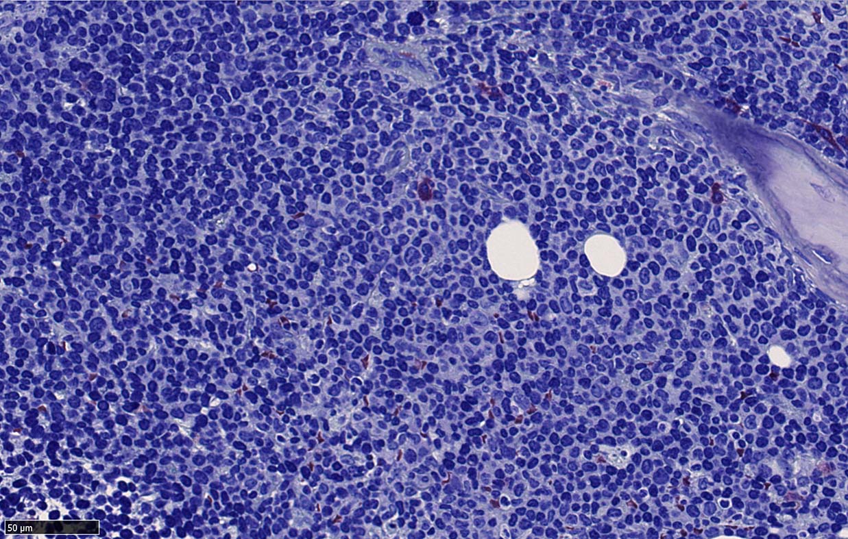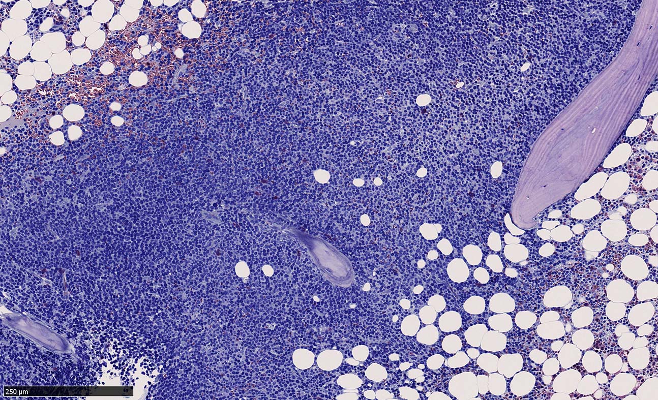 *1 Cohen PL, Kurtin PJ, Donovan KA, Hanson CA: Bone marrow and peripheral blood involvement in mantle cell lymphoma. Br J Haematol 1998; 101: pp. 302-310. *2 Pittaluga S, Verhoef G, Criel A, et. al.: Prognostic significance of bone marrow trephine and peripheral blood smears in 55 patients with mantle cell lymphoma. Leuk Lymphoma 1996; 21: pp. 115-125. *3 Weisenburger DD, Vose JM, Greiner TC, et. al.: Mantle cell lymphoma. A clinicopathologic study of 68 cases from the Nebraska Lymphoma Study Group. Am J Hematol 2000; 64: pp. 190-196. *4 Samaha H, Dumontet C, Ketterer N, et. al.: Mantle cell lymphoma: a retrospective study of 121 cases. Leukemia 1998; 12: pp. 1281-1287. *5 Bertini M, Rus C, Freilone R, et. al.: Mantle cell lymphoma: a retrospective study on 27 patients. Clinical features and natural history. Haematologica 1998; 83: pp. 312-316. *6 Wasman J, Rosenthal NS, Farhi DC: Mantle cell lymphoma. Morphologic findings in bone marrow involvement. Am J Clin Pathol 1996; 106: pp. 196-200. *7 Schenka AA, Gascoyne RD, Duchayne E, Delsol G, Brousset P: Prominent intrasinusoidal infiltration of the bone marrow by mantle cell lymphoma. Hum Pathol 2003; 34: pp. 789-791. *8 Viswanatha DS, Foucar K, Berry BR, Gascoyne RD, Evans HL, Leith CP: Blastic mantle cell leukemia: an unusual presentation of blastic mantle cell lymphoma. Mod Pathol 2000; 13: pp. 825-833. *9 Wong KF, Chan JK, So JC, Yu PH: Mantle cell lymphoma in leukemic phase: characterization of its broad cytologic spectrum with emphasis on the importance of distinction from other chronic lymphoproliferative disorders. Cancer 1999; 86: pp. 850-857.
