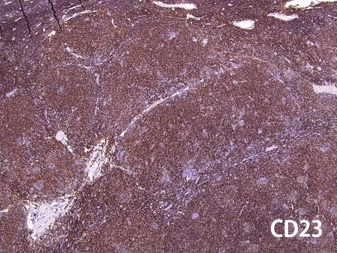 CD23は再発の濾胞性増殖の腫瘍細胞でもびまん性に陽性となった.