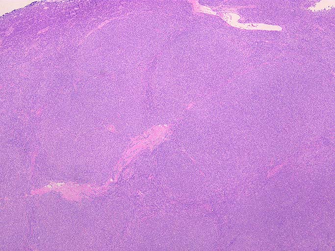 diffuse patternの増殖を示すリンパ腫病変と考える.