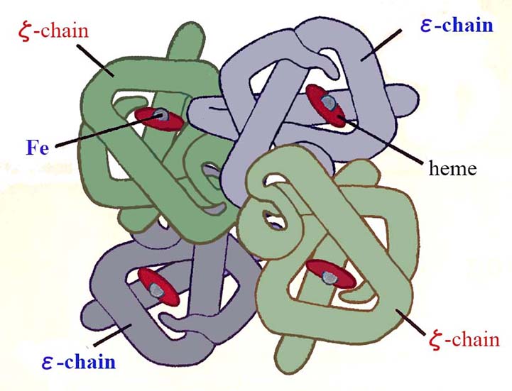 ヒトの正常ヘモグロビンは, 全部で5種類存在する. 胎児期から出生後にかけ時期の進行につれてα鎖様ポリペプチドを2種類, β鎖様ポリペプチドのものは4種類を次々に産生し, ポリペプチドのテトラマーとして構成されるためである.
