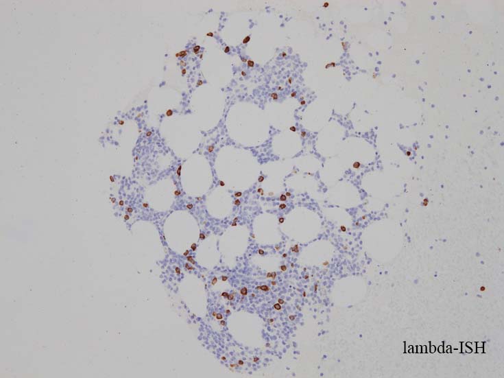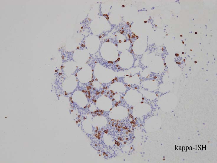 CD138陽性細胞が増加している. CD19陽性細胞が多く認められ, 明かなkappa, lambda restrictionは見られない. polyclonal proliferationと考えられる.