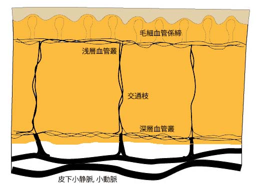 皮膚組織の血管系構築と走行