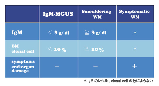 2) IgM-MGUSはLPLあるいはその他のリンパ腫類縁疾患であり, 形質細胞腫とは異なると考えられる。
