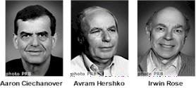 2004年のノーベル化学賞は「ユビキチン依存性タンパク質分解機構の発見」に対しイスラエル工科大学のアーロン・チェハノバ教授(57), 同アブラム・ヘルシュコ教授(67), カリフォルニア大学アーバイン校のアーウィン・ローズ博士(78)に授与された。