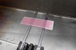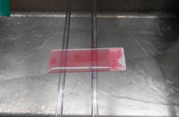 ニューフクシンはアルコール系薬剤とキシレン系薬剤に溶け出しやすいので早めに封入まで完了すること。(ニューフクシンのローズピンクが薄くなってしまう原因となる)
