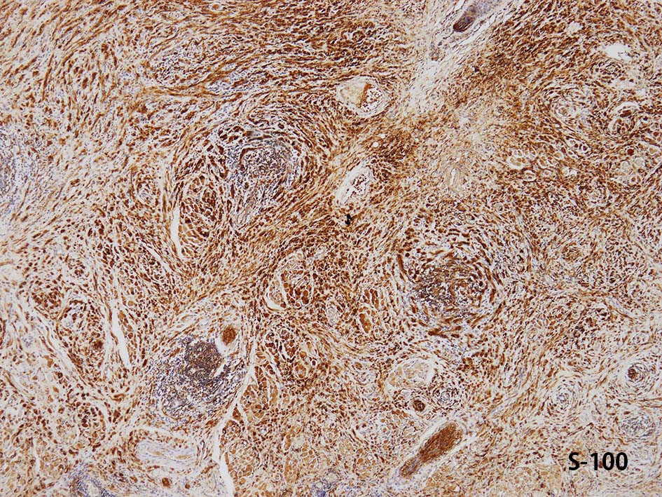 *1 Conley J, et al. Desmoplastic malignant melanoma (a rare variant of spindle cell melanoma).Cancer. 1971 Oct;28(4):914-36. PMID:5286448 *2 Reed RJ, Leonard DD. Neurotropic melanoma. A variant of desmoplastic melanoma.Am J Surg Pathol. 1979 Aug;3(4):301-11.PMID:539614 *3 MacCathy SW, Critty KA, Scolyer RA: Desmoplastic melanoma and desmoplastic neurotropic melanoma. in LeBoit PE, Burg G, Weedon D et al(eds)): Pathology and Genetics of Slin tumors. IARC Press, Lyon, 2006, pp76-78 *4 MacCathy SW, Critty KA, Scolyer RA: Desmoplastic melanoma and desmoplastic neurotropic melanoma. in LeBoit PE, Burg G, Weedon D et al(eds)): Pathology and Genetics of Slin tumors. IARC Press, Lyon, 2006, pp76-78 *5 Busam KJ, et al. Cutaneous desmoplastic melanoma. Adv Anat Pathol 2004;12:1518-1525 *6 Shimada S, et al. Nestin expression as a new marker in malignant peripheral nerve sheath tumors. Pathol Int 2007; 57: 60-67