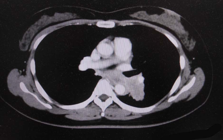 経過観察中に施行された胸部CTでは左肺癌が疑われた.精査加療目的に当院呼吸器内科を紹介受診.
