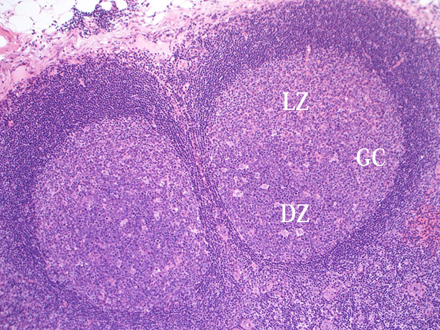 胚中心(germinal center: GC)とmantle zoneをもつ.