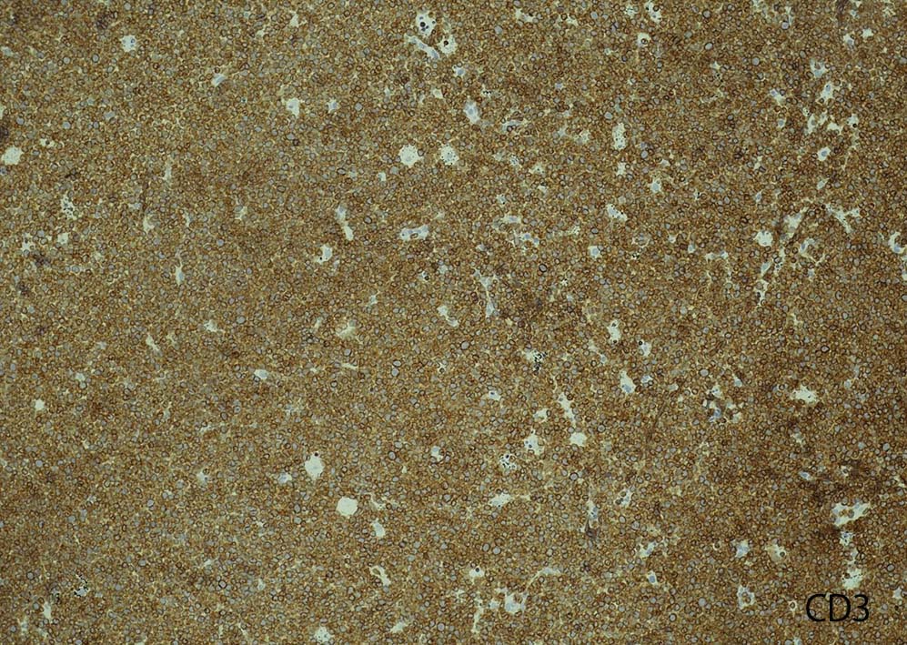 免疫染色のオーダがされていなかった, TdT, CD2, CD7, PD-1, CXCL13, CD79a, PAX5染色を追加した.