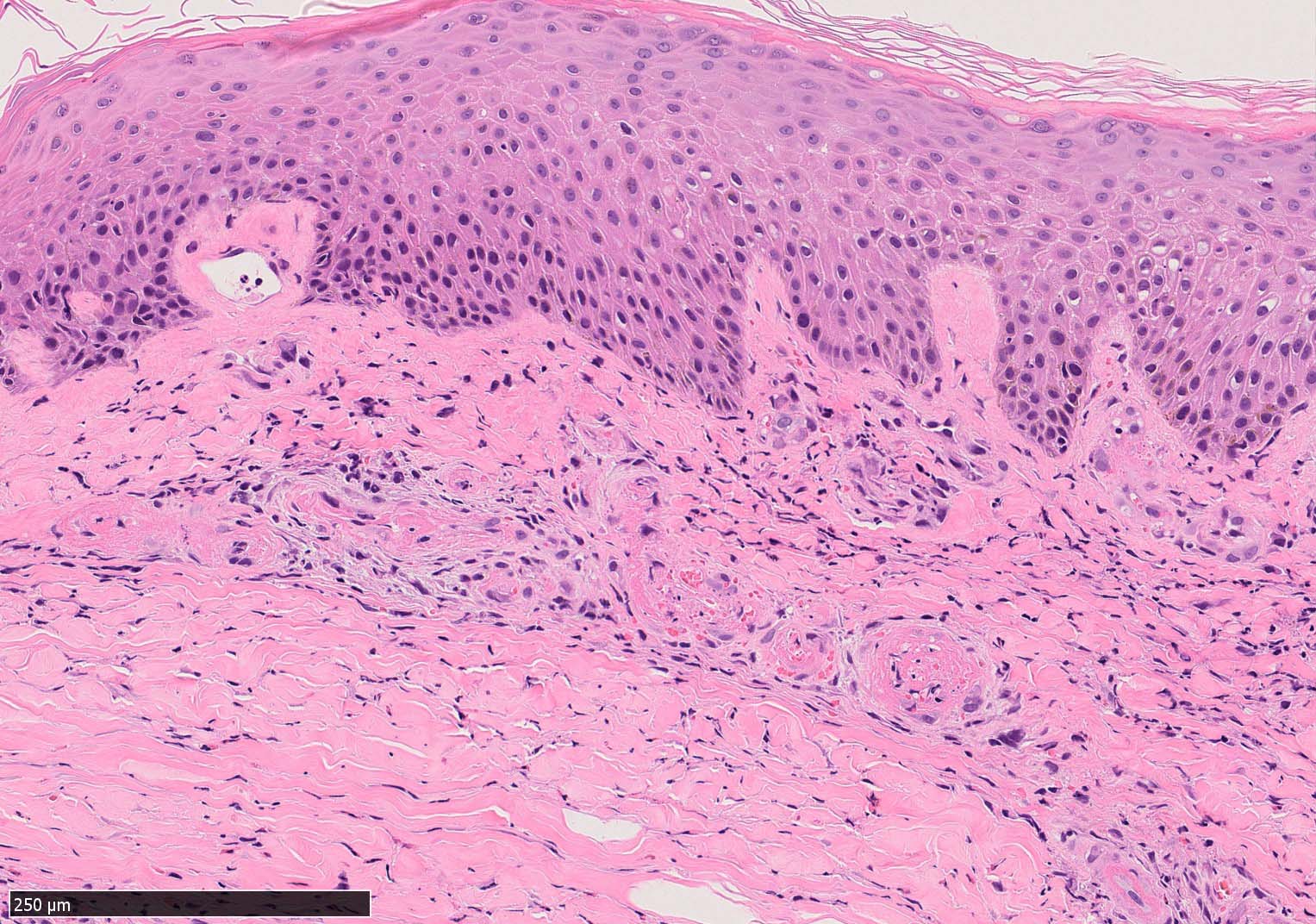 (case02の皮膚表面にみられる硝子様の層がそれに相当するようです。)