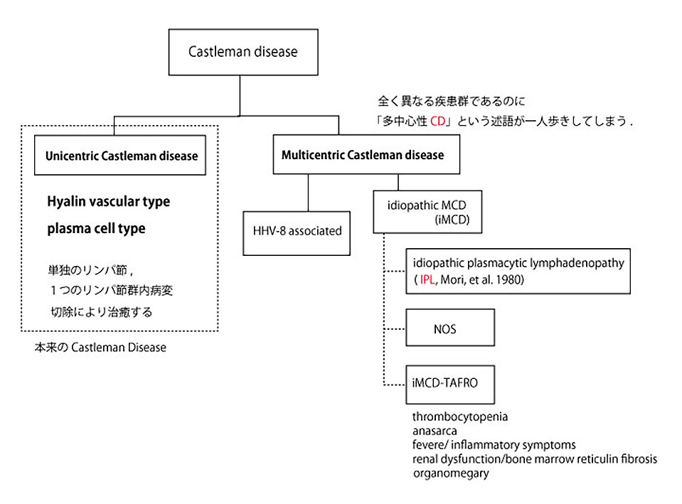 1956年Dr. Benjamin Castlemanらは著しい血管増生と胸腺Hassal小体に似た小さな胚中心をもつ異常濾胞が特徴の限局性リンパ節過形成をきたす疾患を報告した。
