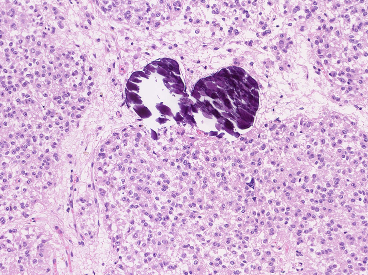 松果体には松果体の細胞またはその前駆細胞から発生する腫瘍の他に多くの腫瘍, glioma, meningiomaあるいは, 胚細胞腫germ cell tumorが発生する。