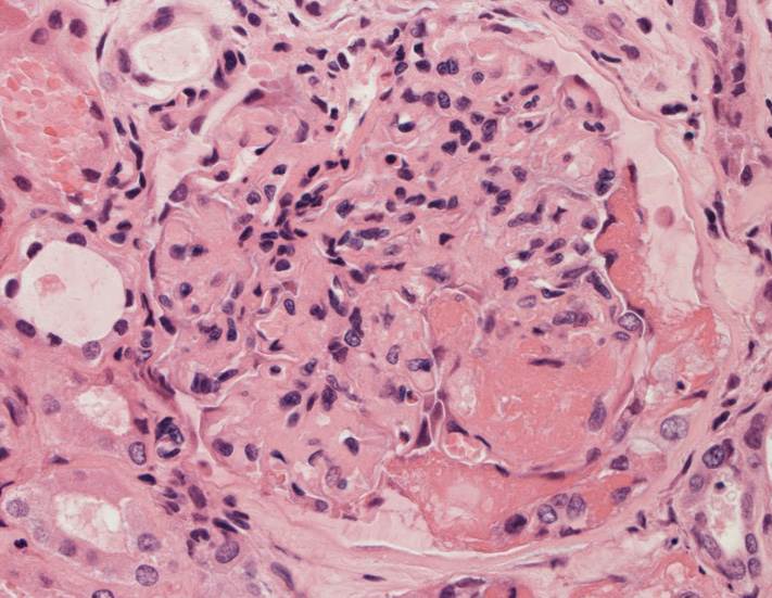 腎臓の病理組織所見-->壊死性糸球体腎炎