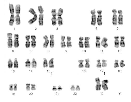 t(15;17)(q22;q12)の典型的な転座が/20cellに認められた。