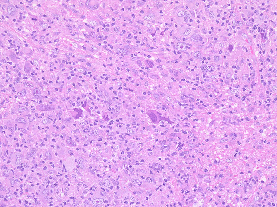 背景にはリンパ球, 形質細胞, 好酸球, 組織球などがみられ、いずれかが優位な場合もある。組織球はしばしば類上皮様となり特にEBV感染例にみられ肉腫様組織像を形成することがある。