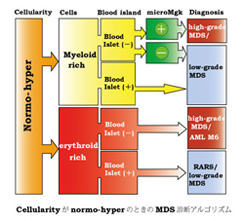- Hypo-Patchy → Myeloid+/多い → Mgk+/ microMgk+ → low-grade MDS