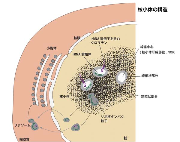 mRNAの翻訳機能も核小体が担っているため, リボゾームの生産過程も酵母からヒトまで高度に保存されている.