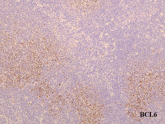 bcl-2陽性. CD10, bcl-6は陰性. bcl-2陽性の一次濾胞をFLと間違えないよう注意.