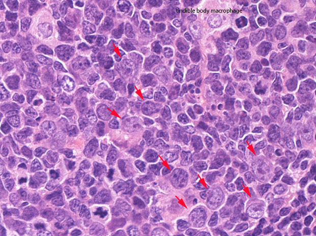 centrocytes(左図), centroblasts(中央, 赤矢印), Mantle zone-GC boder(右図) クリックで拡大図.