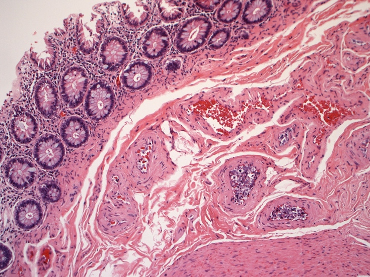 膵, 甲状腺;細動脈内の腫瘍細胞. 大腸;粘膜下細動脈内に腫瘍細胞を見る。